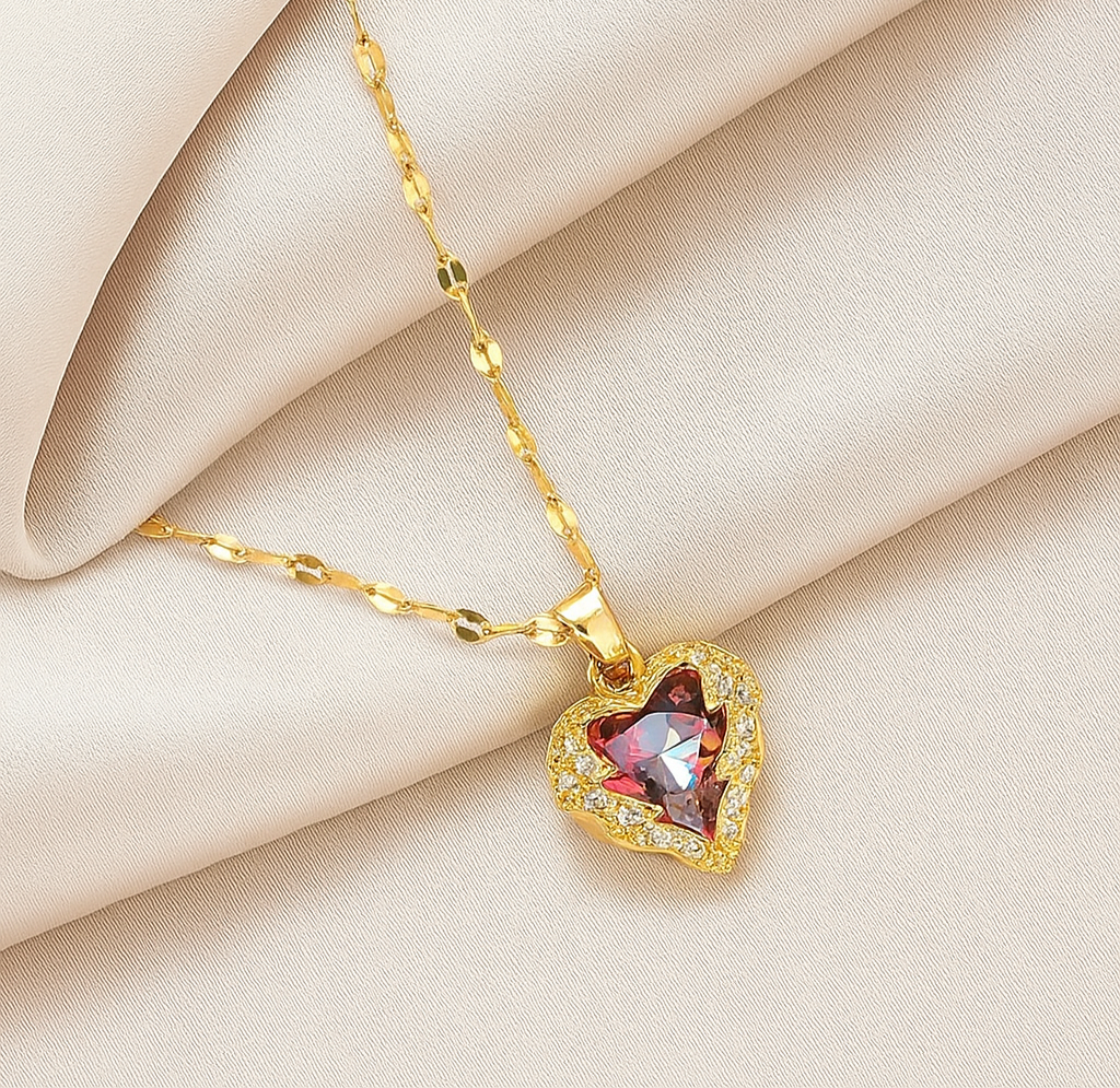Elegant and timeless, this gold-plated heart pendant features sparkling cubic zirconia and a heart-shaped center stone.It’s the perfect blend of love and personalization. Ideal for everyday wear or a meaningful gift.